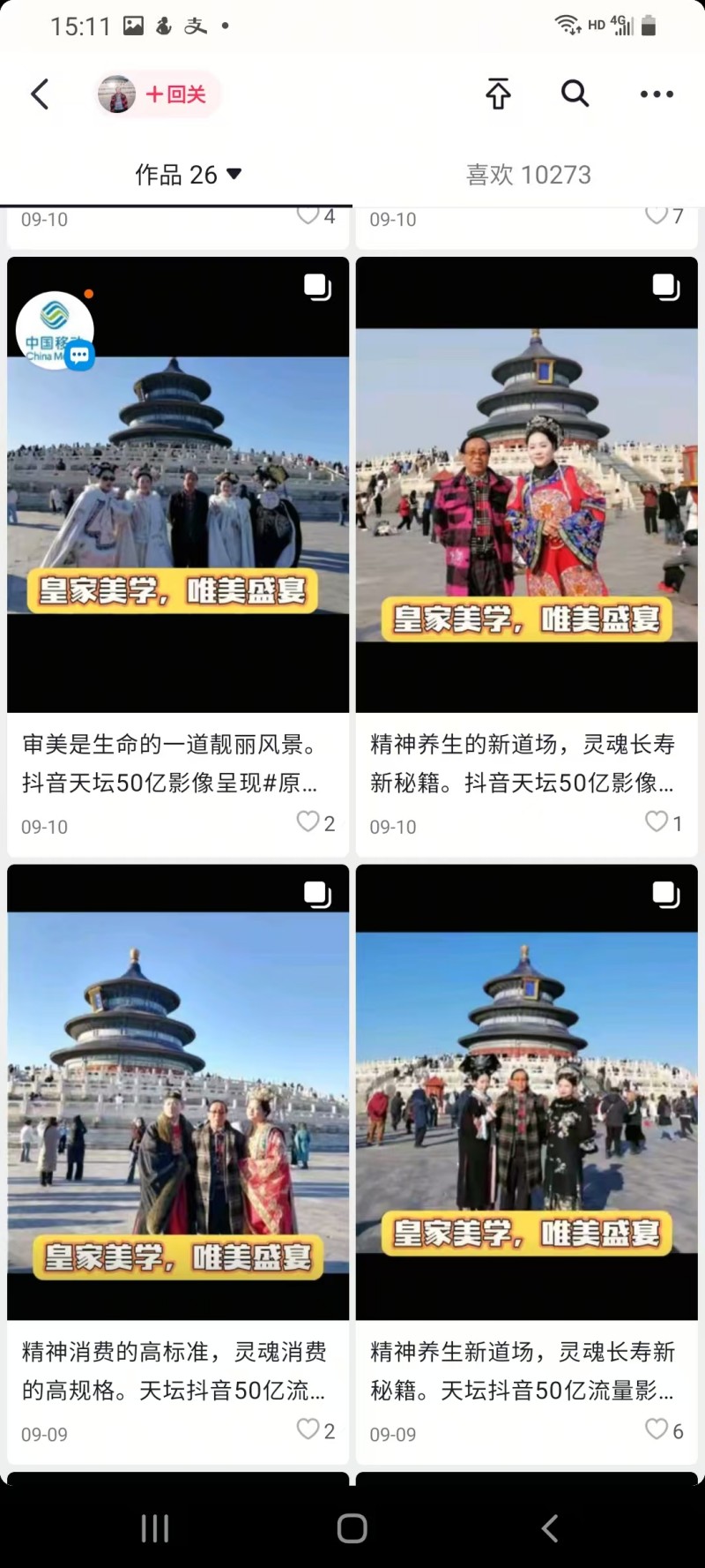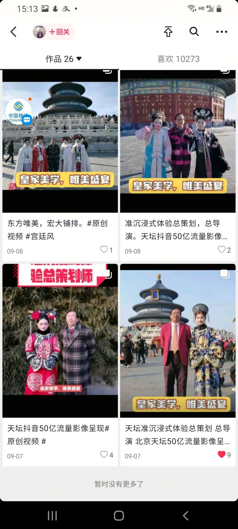 2025年初付宝华院长为天坛策划了“天人合一、宇宙为媒,天坛与情人的唯美叙事”大主题后,引起了全国游人和网红的沉浸式体验热潮。一时间天坛的沉浸式旅游流量遥遥领先中国其它景区,创造了天坛抖音50亿流量的新奇迹!