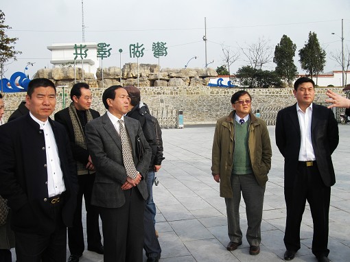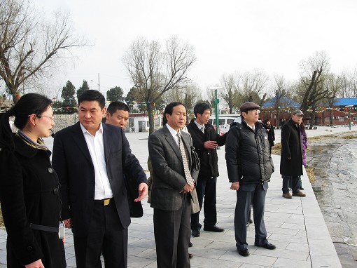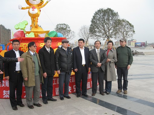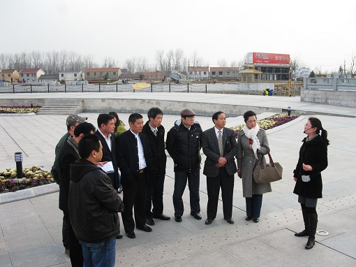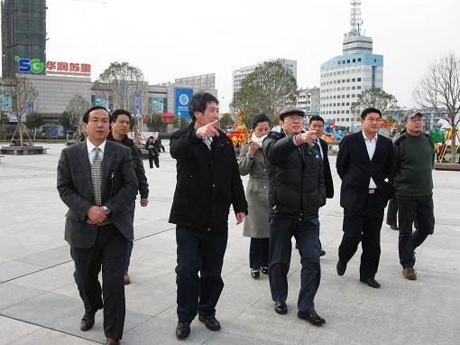 洪泽县政府领导、文化局领导、旅游局领导陪同付宝华院长在洪泽城市广场进行考察