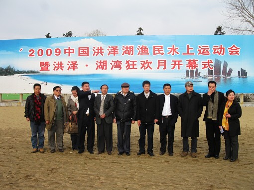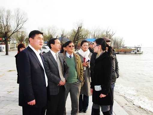 洪泽县政府领导、文化局领导、旅游局领导陪同付宝华院长在洪泽湖考察