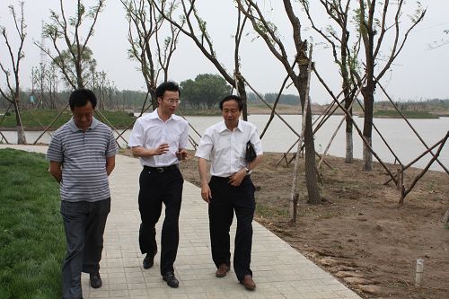 市委宣传部领导陪同付宝华院长在葛西河景观带进行考察调研
