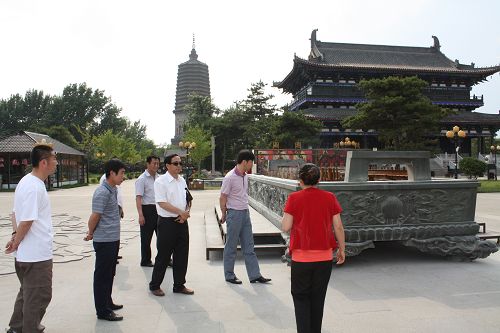 市委宣传部领导陪同付宝华院长在广佑寺进行考察调研
