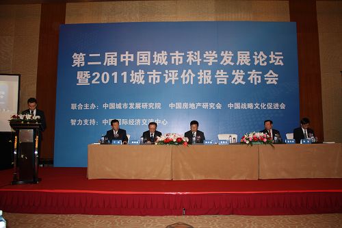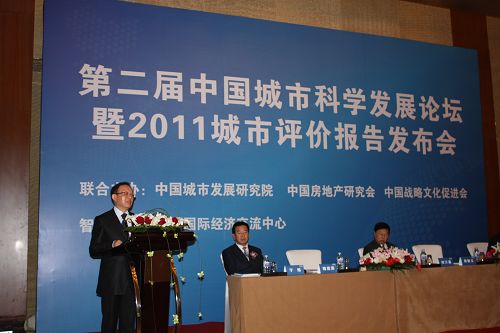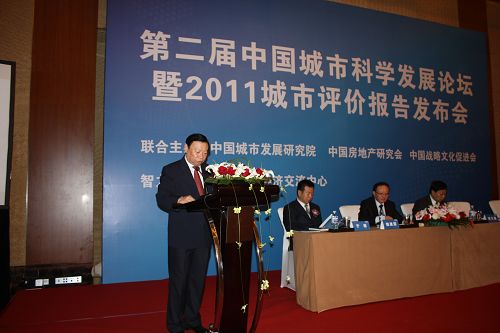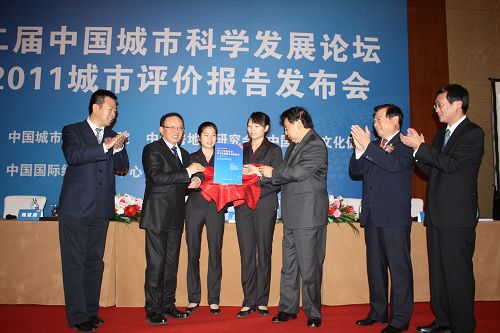 郑万通副主席和魏建国秘书长为2011中国城市科学发展综合评价报告推出揭幕