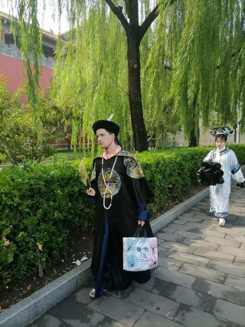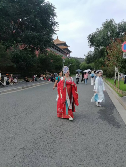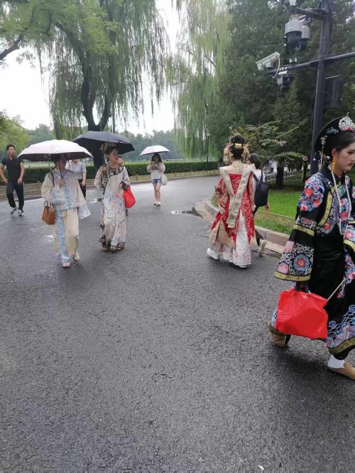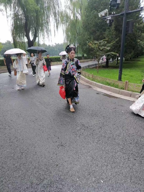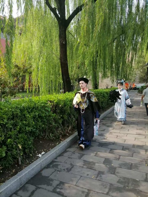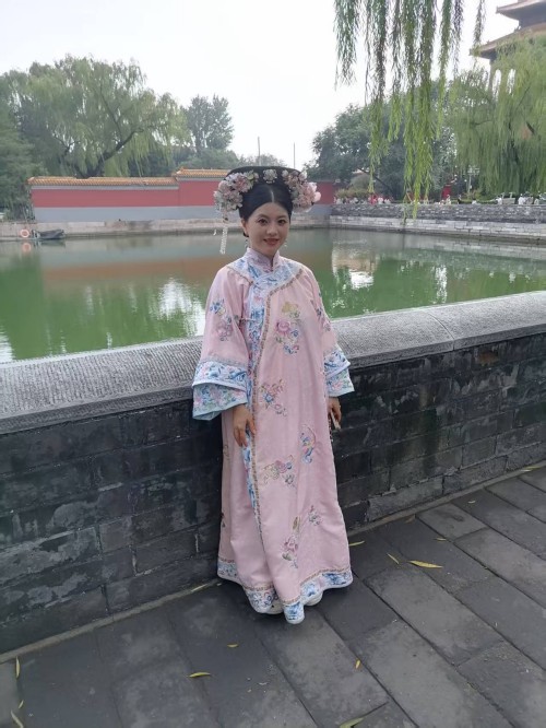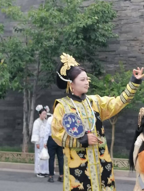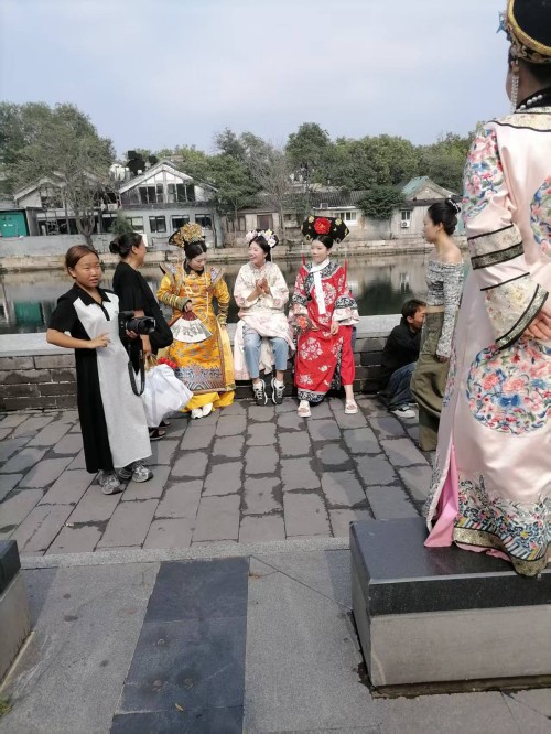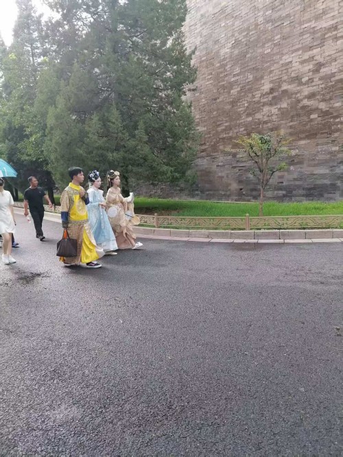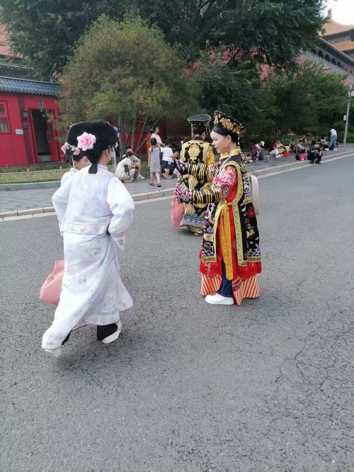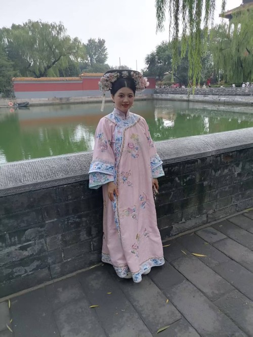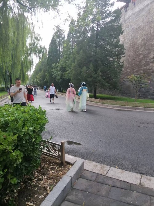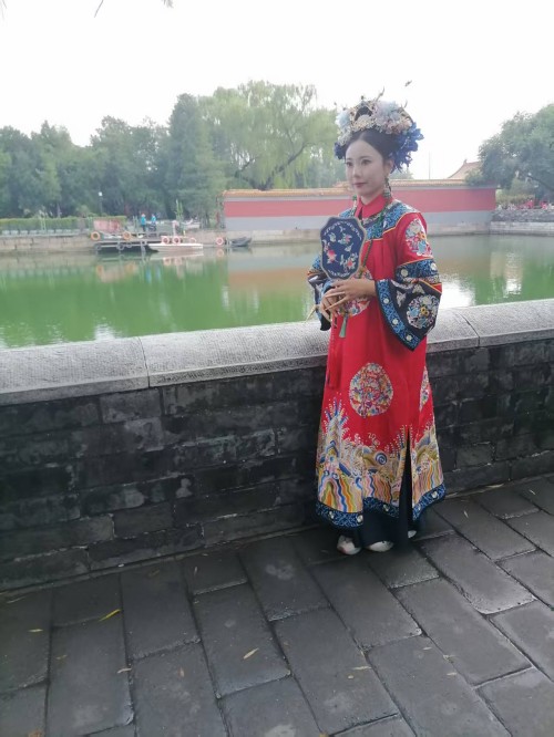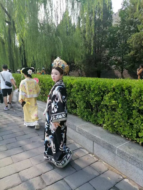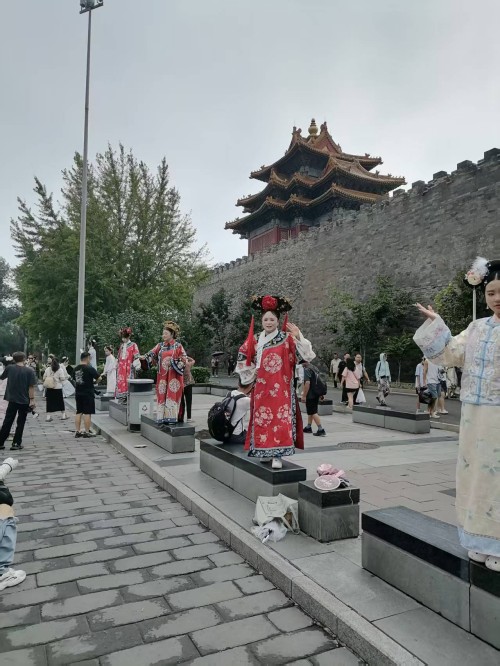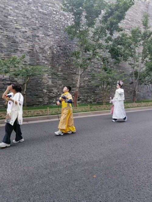 可以说当我们沉浸式体验在故宫里面受到环境制约,那么我们的身心都会受到影响,情感都会受到束缚。场景体验的表情那一定是冷情的,一定是古板的。更不会从容自得,更不会心花怒放。尤其沉浸式体验超级网红所要呈现的宫廷里格格的婀娜多姿,所要呈现的绰约风情都体现不出来。所以她们只能在高墙外找到一个放飞自我的场地,这个场地还是背靠故宫的历史场景。它虽然不如故宫里建筑那样气派,虽然它不如故宫里建筑那样豪华,虽然它不如故宫里建筑那样堂皇,虽然它不如故宫里建筑那样巍峨。但是它的高墙,但是它的柳绿,但是它的护城河里面的河水,更别具人间的风情,更别具人间的温婉,更别具人间的温馨,更别具人间的温情。
