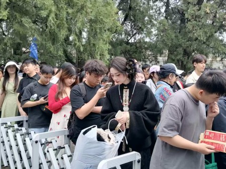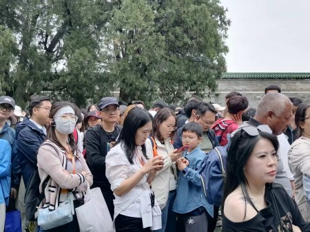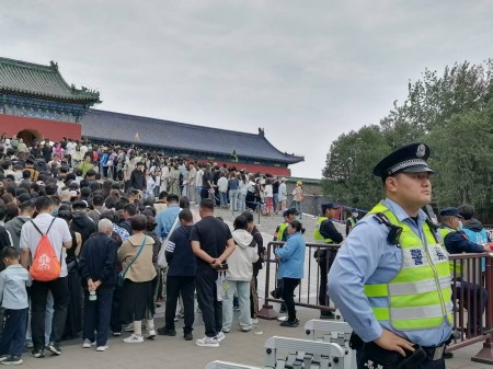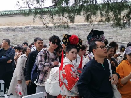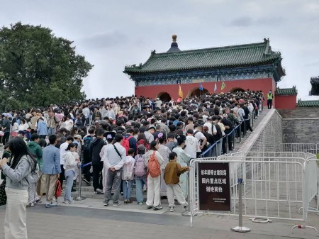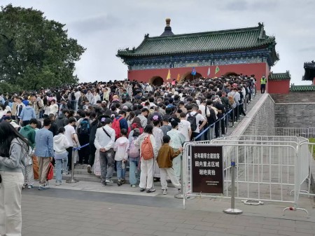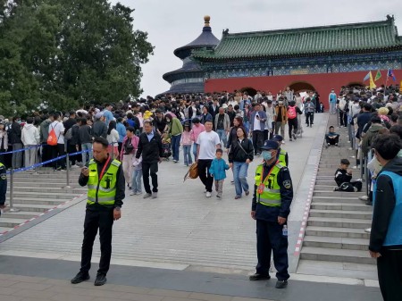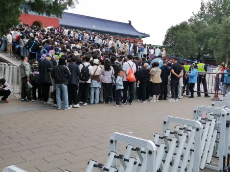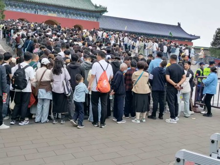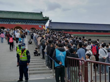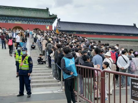 北京天坛五一假期又出现“人墙式入园”盛况(4