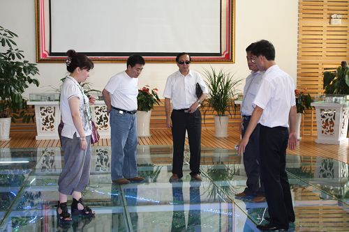 文登市旅游局领导和中昊投资集团老总陪同付宝华院长在南海新区规划馆参观