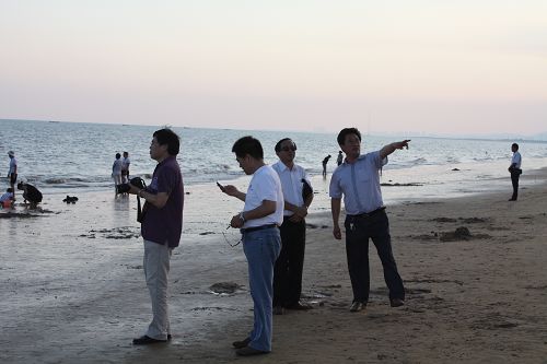 文登市旅游局领导和中昊投资集团老总陪同付宝华院长在南海海滨考察参观