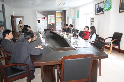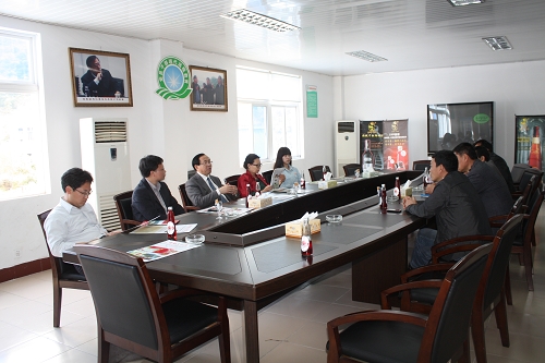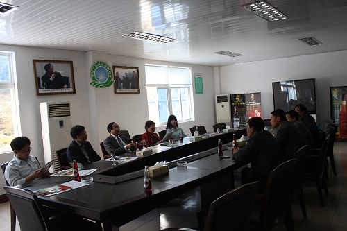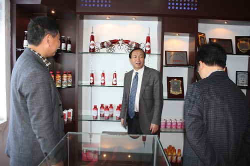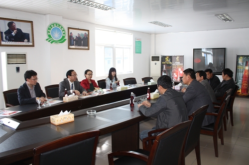 聚仙庄饮品有限公司李维国董事长向付宝华院长介绍公司发展情况