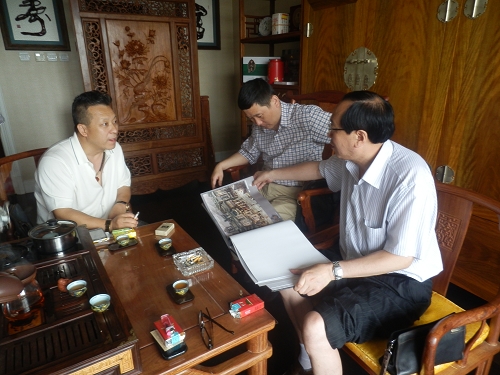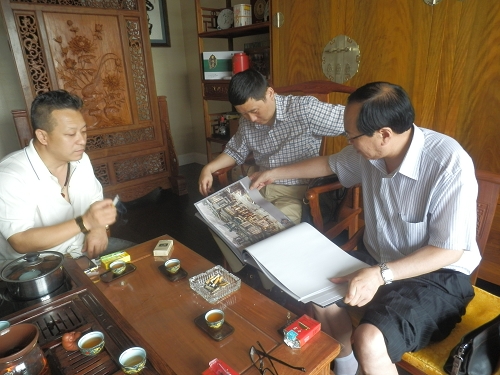 张纪中制片工作室执行制片人宋亚平向付宝华院长介绍他的“紫川”影视城的设计理念