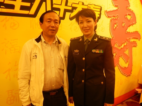 付宝华院长和前来祝贺的艺术家中国军乐团女高音歌唱家毕玉凝在一起