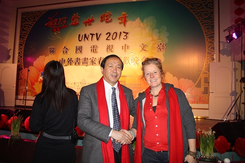 近日,付宝华院长应联合国电视中文台邀请,出席中外书画家春节联欢晚会。国务院外联部、国务院侨办、国际文化交流协会、中华文化促进会及各国驻华大使、文化参赞、中外书画名家聚集一堂举办联欢晚会。付宝华院长作为嘉宾出席了联欢晚会。晚会气氛非常热烈,中外名家聚集一堂,文艺节目非常精彩,名家书画异彩纷呈,达到了中外书画名家充分交流的目的。