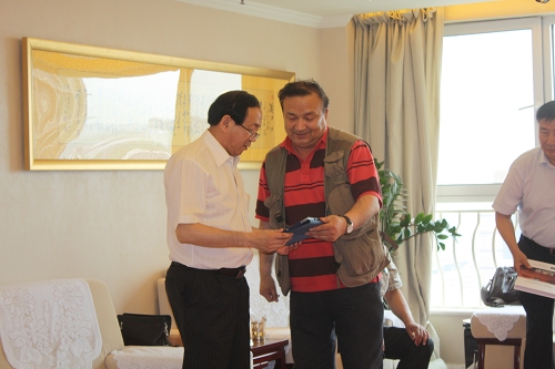 近日,付宝华院长会见中央美术院著名油画家文国璋老先生和新疆著名画家。中央美术院著名油画家文国璋老先生,以画新疆油画为主题,被誉为中国新疆油画第一人。文国璋老先生把一生情感寄托在了新疆的山山水水上,画出了无数新疆山山水水的油画,被称为西部画王。付宝华院长在会见时指出:因城市规划,自己多次到新疆考察调研,对新疆的山山水水由衷的热爱,因此对文国璋老先生的新疆油画有种特殊的感情,因此对文国璋老先生这种对新疆的文化贡献表示由衷的感谢!