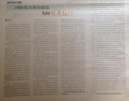 《中国城市报》发表付宝华院长文章“国际化大都市建设为何频频亮红灯”